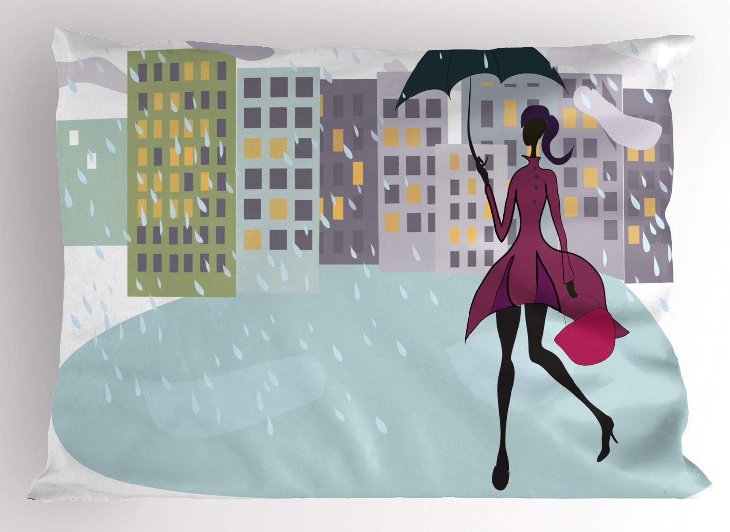 Amazon Com Lunarable Umbrella Girl Pillow Sham Woman Walking