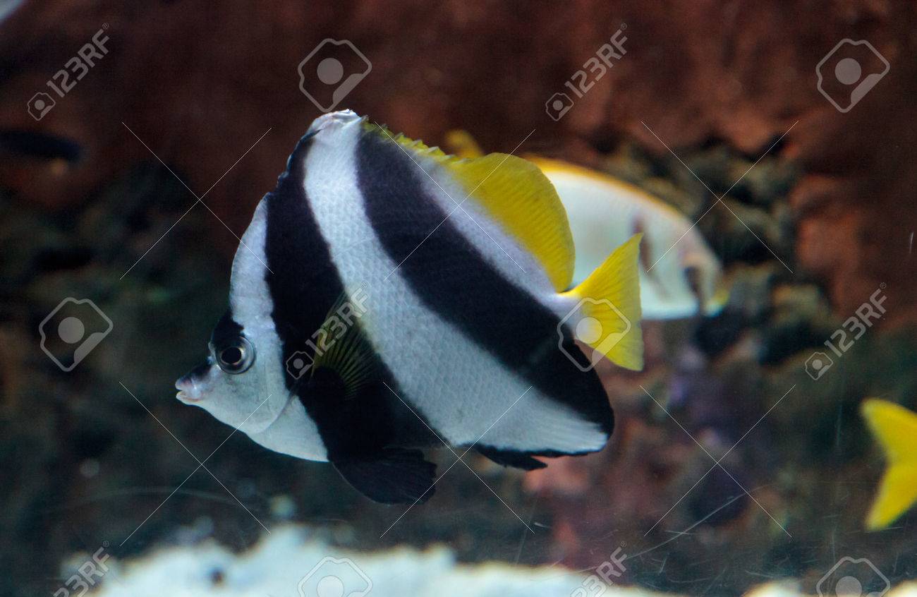 Pennant Butterflyfish Heniochus Acuminatus Has Black And White