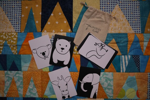 High Contrast Black And White Animal Flashcards For Babies Etsy