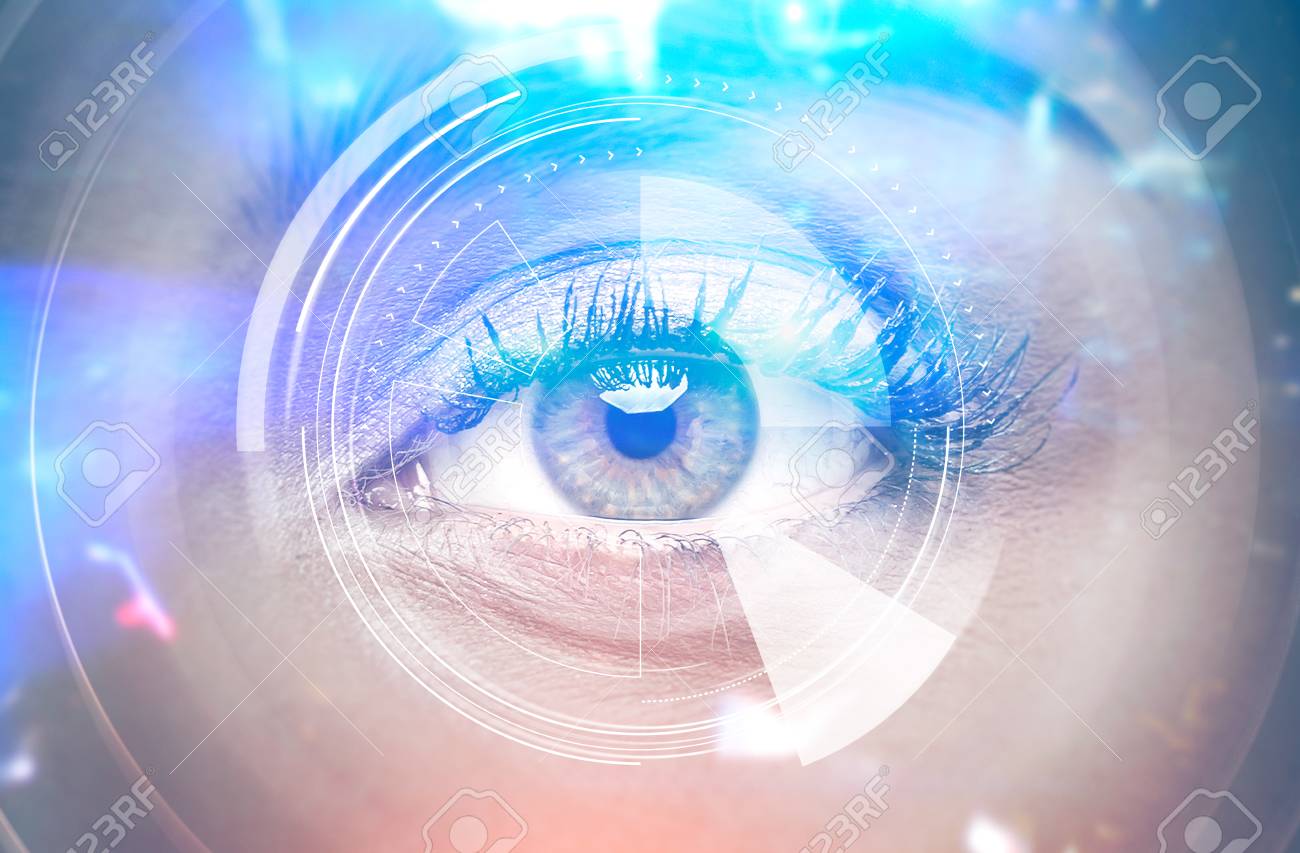 Close Up Of A Beautiful Woman Eye With Long Eyelashes Rays Of